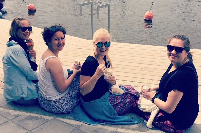 Ikke alle i vår lille gruppe spiser LavFODMAP – men vi har allikevel en felles oppfattelse om hva vi kan spise eller hva vi bør styre unna. For eksempel laget vi taco på fredagen, med hjemmelaget tacokrydder og salsa (uten hvitløk og løk), fri for mais (for maiskorn kan skape problemer i tarmer med Crohns eller Ulcerøs Kolitt) og med laktosefri rømme. Og selv om ikke alle vil spise det samme er det faktisk ganske deilig å være flere som er sære sammen! På lørdag spiste vi is på brygga i Son, vel vitende om at vi kanskje kunne bli litt gale i magene hele gjengen av laktosen – men det var verdt å nyte en is i sola allikevel.
