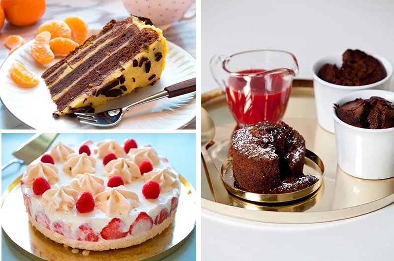 Det nærmer seg nyttårsaften, og siden jeg sitter å lurer på hva jeg skal servere kan det jo hende du gjør det samme? Ingenting er så hyggelig og stas som en imponerende kake på nyttårsaften, i hvert fall ikke om den er laget allergivennlig slik at alle kan spise den samme kaken! Her får du et lite knippe med kake og dessert forsalg fra meg, det meste fra bloggen her, men noe også fra boka Magevennlig Mat.