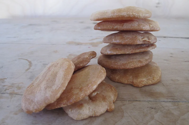 Forvarm ovnen til 180 grader. Stek marsipanchipsen i cirka 5-6 minutter til de akkurat begynner å få en gylden farge. Ta de ut av ovnen og la de hvile på rist til de er sprø og kalde.